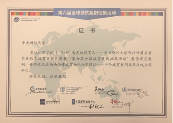The sixth round of the Global Solicitation on Best Poverty Reduction Practiceswas jointly initiated by seven organizations, including the International Poverty Reduction Center in China, the World Bank, the Asian Development Bank, the Food and Agriculture Organization of the United Nations, the International Fund for Agricultural Development, the World Food Programme, and the China Internet Information Center. A total of 108 cases were selected worldwide, with a focus ontheir beingsustainable, replicable, feasible, and inclusive for vulnerable groups. CUFE’s case will be included in the Global Poverty Reductionand Inclusive Growth Portalanditscase database, contributing China’s university-based experience to the international community.